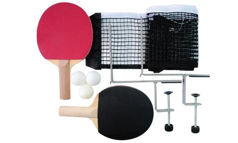 Great for home or school use Turns any dining table, snooker table or desk into a table tennis table. Supplied with a 19mm playing surface, a full size 6ft net and post set, two bats and three balls. The table stores away taking up only the space of the table tops themselves.