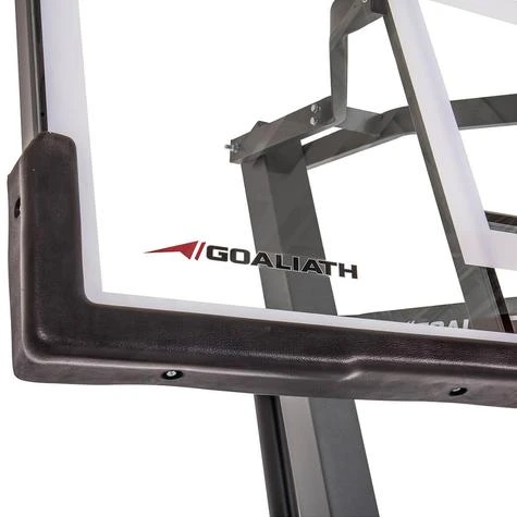 SKU 2102 Adjustable Height yes Backboard Dimensions 152 x 84 cm Backboard Material tempered glass Brand Goaliath Color grey Delivery Information Delivery to curbside (Please leave your phone number when ordering, so we can arrange a suitable delivery date for you) Delivery time 4-8 working days Dimension (H x B) 370,5 x 152 cm Flexible Rim yes Height Adjustment 230 – 305 cm Height Scale infinitely variable Overhang 61 cm Pole Size 10 x 10 cm Pole Stability 2-Piece Pole System Rim Pro-Style Flex Rim Rim Diameter 45 cm System of height adjustment easy slide actuator Weight 89.7 kg
