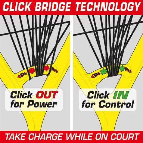 The Karakal Core Bridge allows for longer strings, an increased sweet spot and the incorporation of our NEW Click Bridge Technology which enables you to adjust the rackets power level just by adjusting the strings on the Core Bridge. Simply click out for power, click in for control.