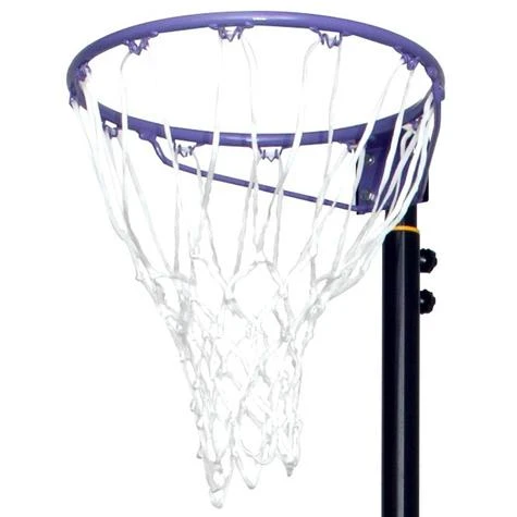 The model has a black pole and a purple 15” powder coated steel ring (38cm) including hooks for easy attachment of the white nylon net and comes complete with a matching pole padding for added player safety when in use. The Goal Shot Unit features a durable ballast box with wheels that require 50 litres of water or 75kgs of sand to ensure maximum stability.